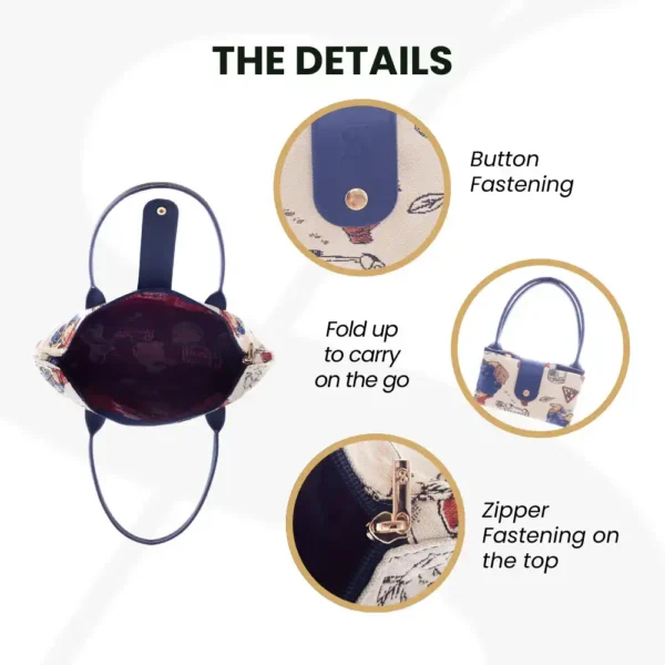 - Το επάνω μέρος της τσάντας είναι καλυμμένο με tapestry υλικό