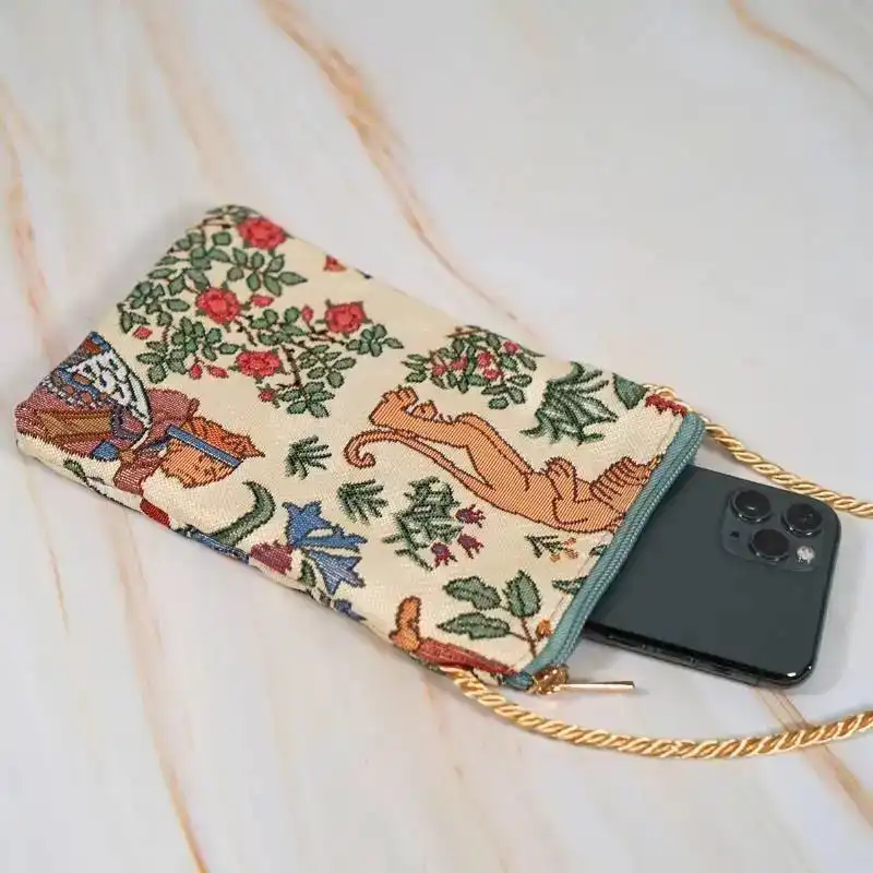 Η συλλογή Alice in Wonderland είναι εμπνευσμένη από τον σχεδιαστή υφασμάτων Charles Voysey. Περιλαμβάνει όλους τους υπέροχους και παράξενους χαρακτήρες της θαυμαστής ιστορίας που γνωρίζετε και αγαπάτε. Ένα τσαντάκι, πλούσιο σε χρώματα και ιστορίες, ιδανικό για τη φύλαξη του κινητού σας και μικρών αντικειμένων! Κάθε προϊόν επιμελείται σχολαστικά και κανένα δεν είναι ακριβώς το ίδιο με κάποιο άλλο.